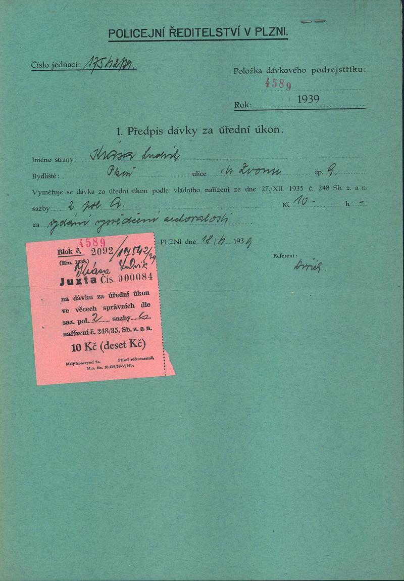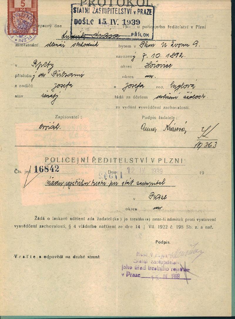 Staatliche Gebietsarchiv in Pilsen > Polizei-Direktion Pilsen > 1918-1951 > K > Krása Ludvík