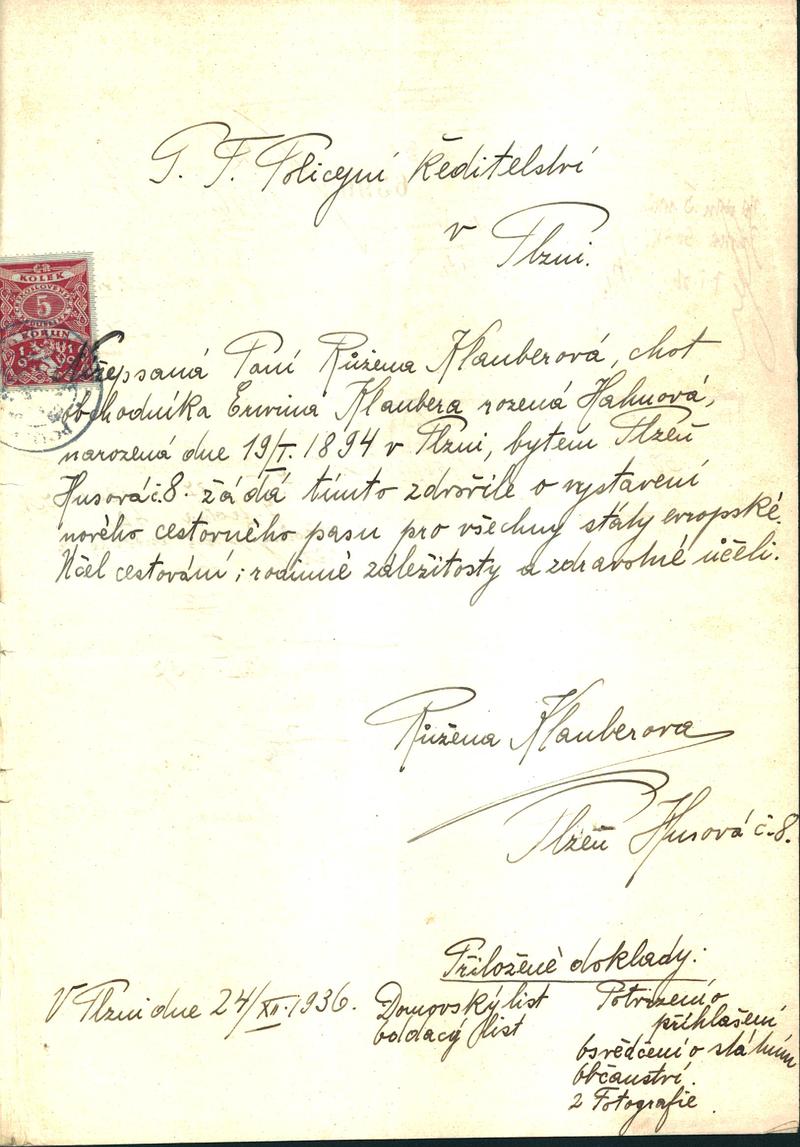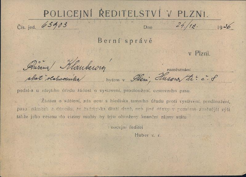 Staatliche Gebietsarchiv in Pilsen > Polizei-Direktion Pilsen > 1918-1951 > K > Klauberová Růžena