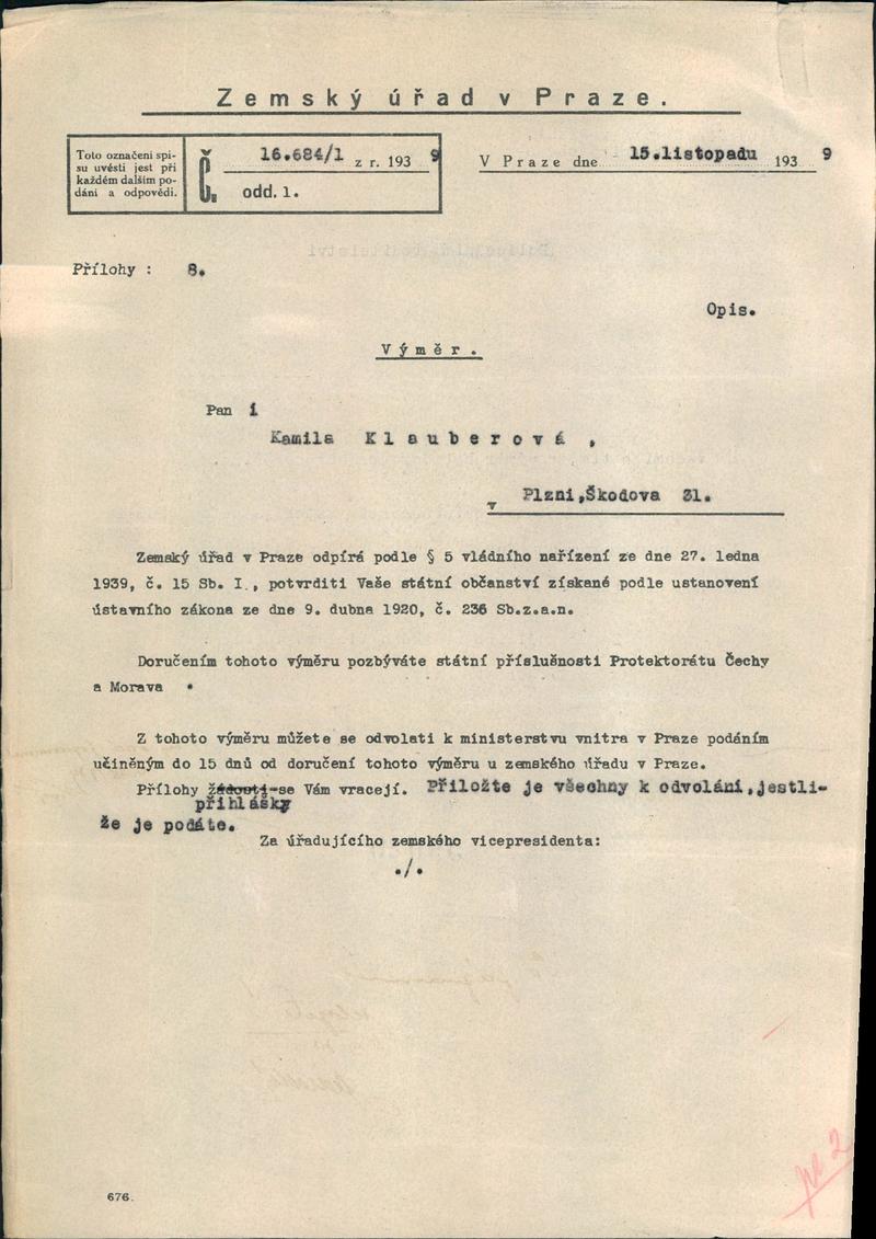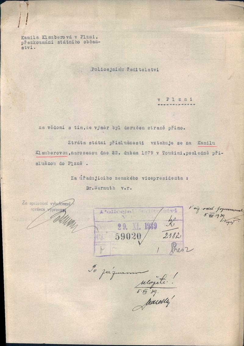 Staatliche Gebietsarchiv in Pilsen > Polizei-Direktion Pilsen > 1918-1951 > K > Klauberová Kamila