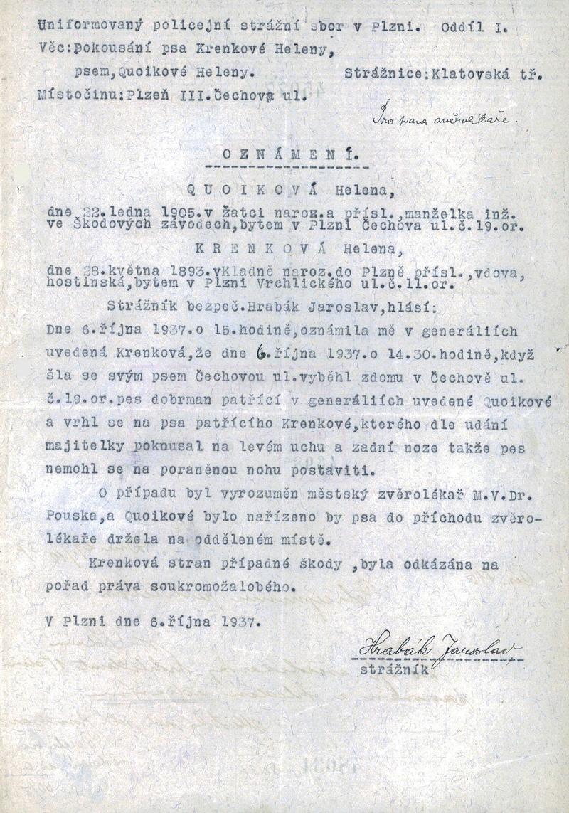 Staatliche Gebietsarchiv in Pilsen > Polizei-Direktion Pilsen > 1918-1951 > K > Quoiková Helena
