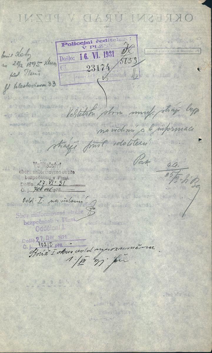 Staatliche Gebietsarchiv in Pilsen > Polizei-Direktion Pilsen > 1918-1951 > K > Katz Emil