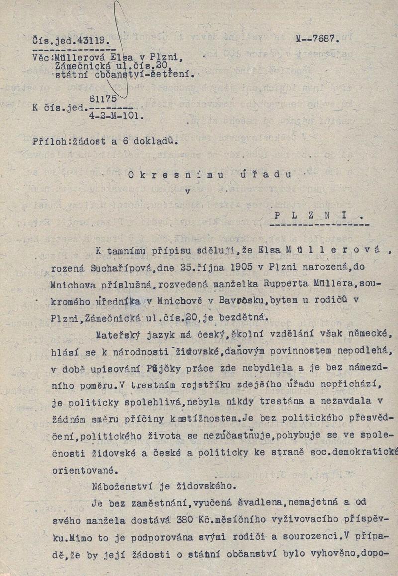 Staatliche Gebietsarchiv in Pilsen > Polizei-Direktion Pilsen > 1918-1951 > M > Müllerová Elsa