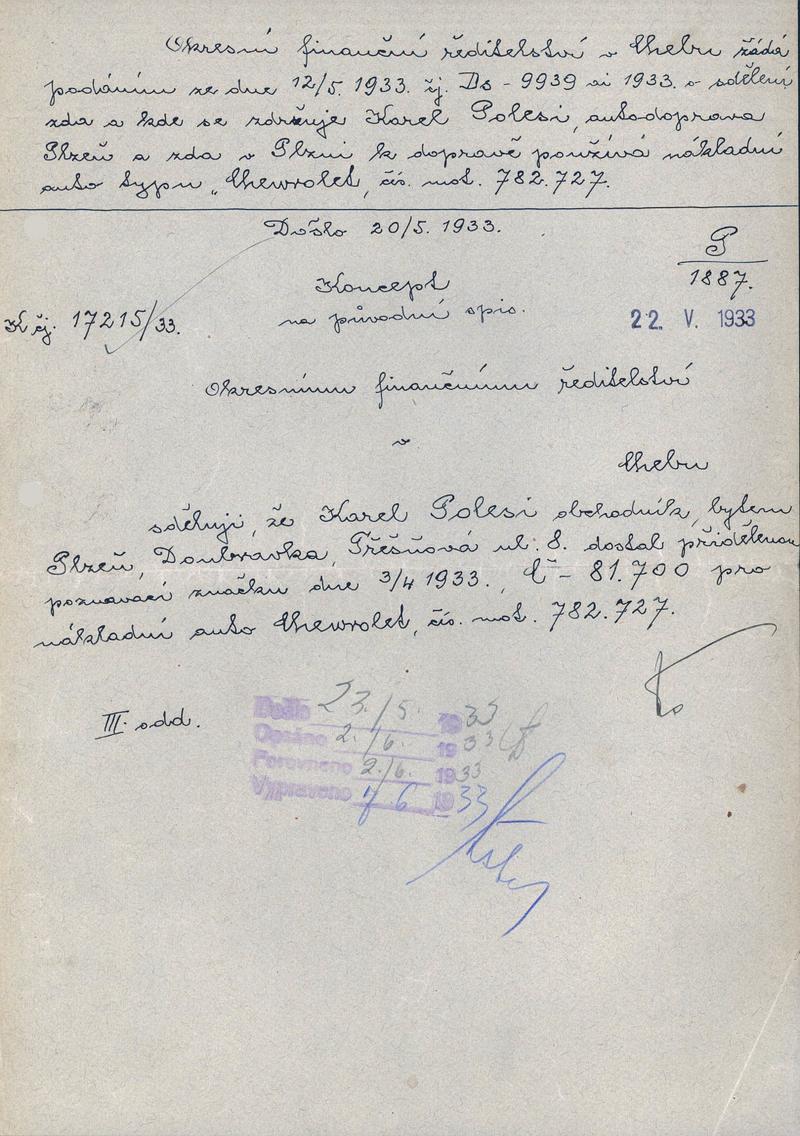 Staatliche Gebietsarchiv in Pilsen > Polizei-Direktion Pilsen > 1918-1951 > P > Polesi Karel