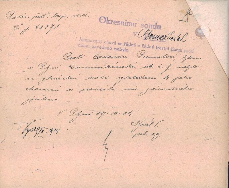 Staatliche Gebietsarchiv in Pilsen > Polizei-Direktion Pilsen > 1918-1951 > P > Premsler Edvard