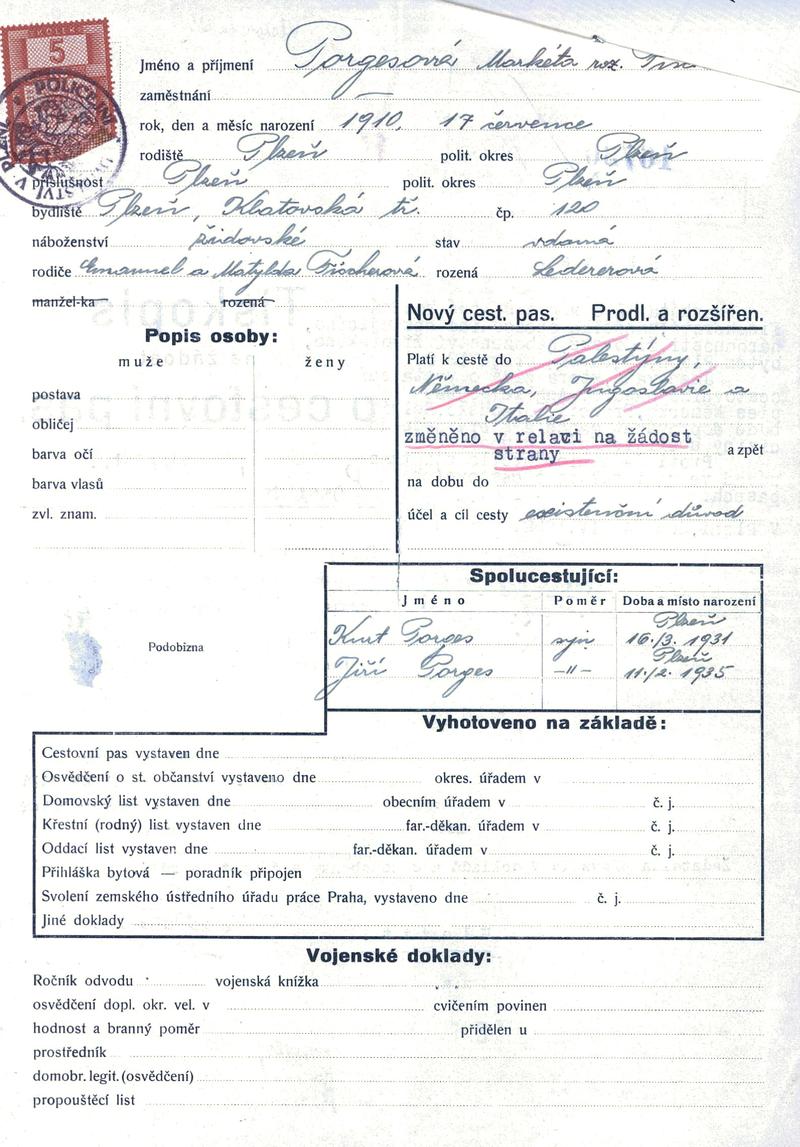Staatliche Gebietsarchiv in Pilsen > Polizei-Direktion Pilsen > 1918-1951 > P > Porgesová Markéta