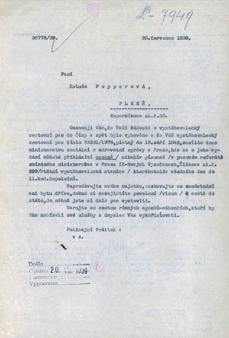 Staatliche Gebietsarchiv in Pilsen > Polizei-Direktion Pilsen > 1918-1951 > P > Popperová Káta