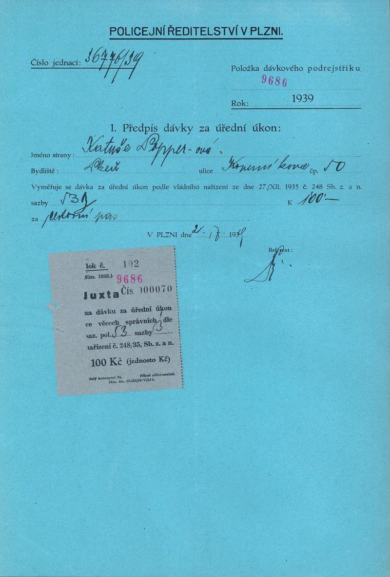 Staatliche Gebietsarchiv in Pilsen > Polizei-Direktion Pilsen > 1918-1951 > P > Popperová Káta