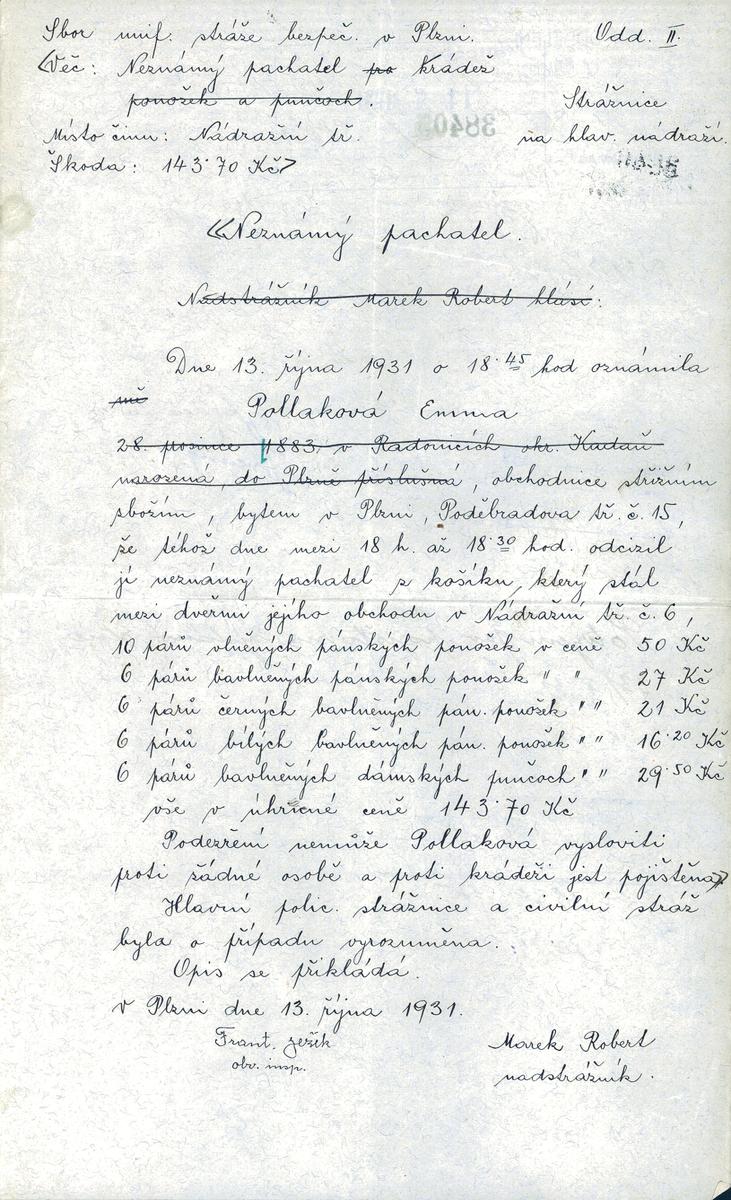 Staatliche Gebietsarchiv in Pilsen > Polizei-Direktion Pilsen > 1918-1951 > P > Pollaková Ema