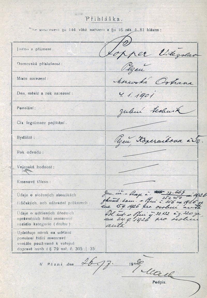 Staatliche Gebietsarchiv in Pilsen > Polizei-Direktion Pilsen > 1918-1951 > P > Popper Vítězslav