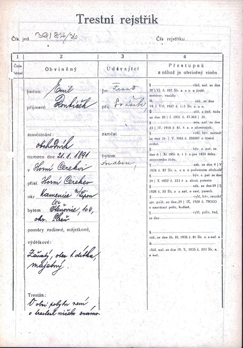 Staatliche Gebietsarchiv in Pilsen > Polizei-Direktion Pilsen > 1918-1951 > R > Roubiček Emil