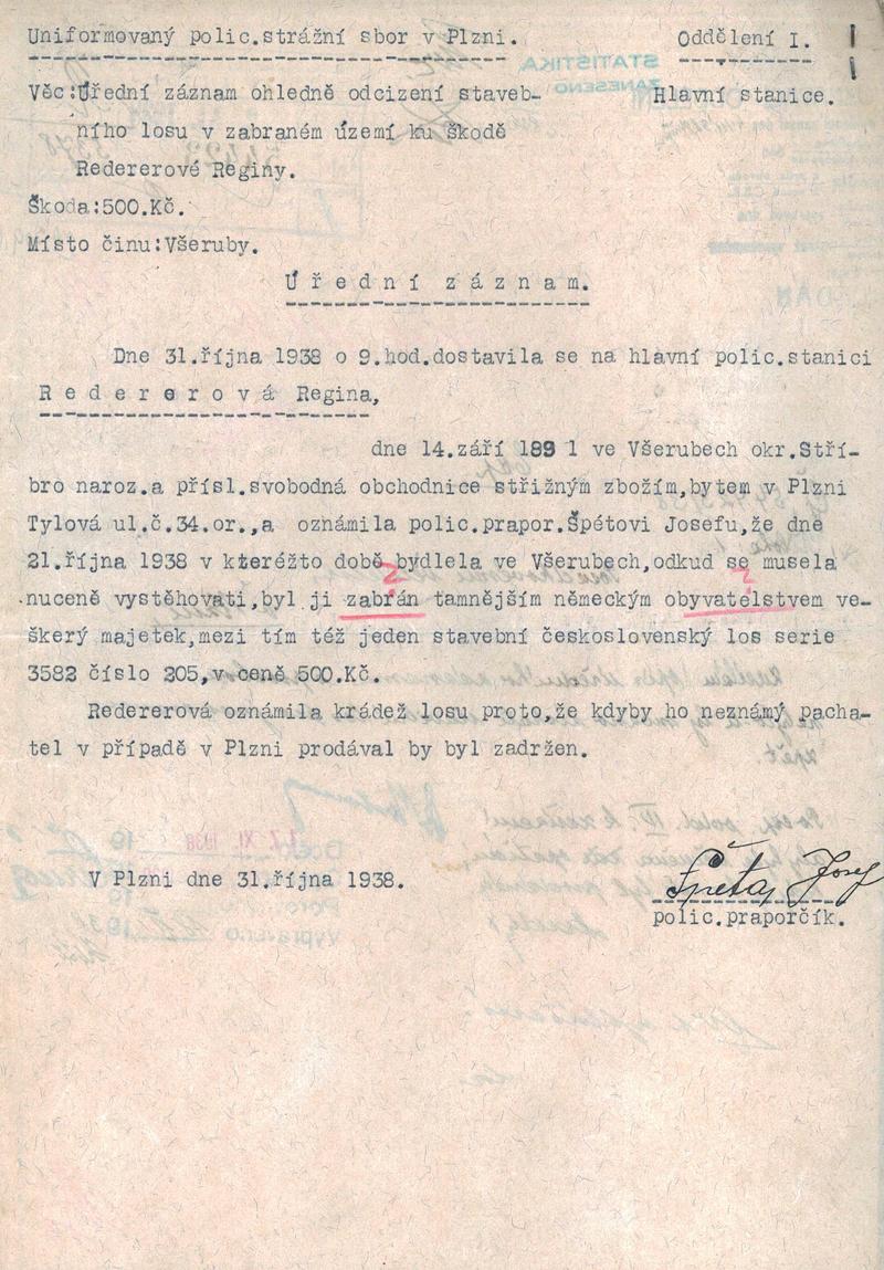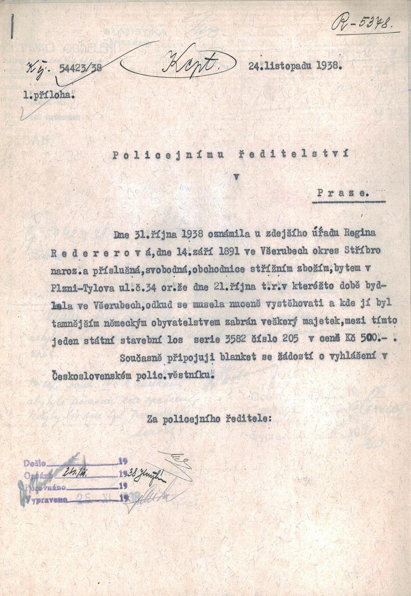 Staatliche Gebietsarchiv in Pilsen > Polizei-Direktion Pilsen > 1918-1951 > R > Redererová Regina