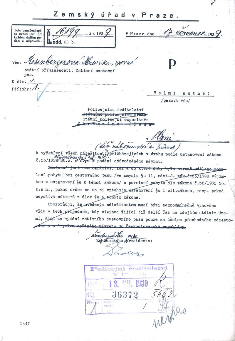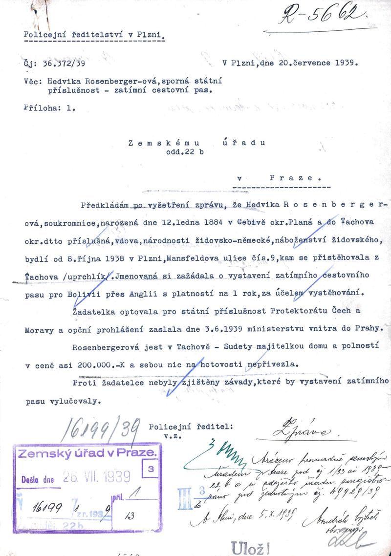 Staatliche Gebietsarchiv in Pilsen > Polizei-Direktion Pilsen > 1918-1951 > R > Rosenbergerová Hedvika