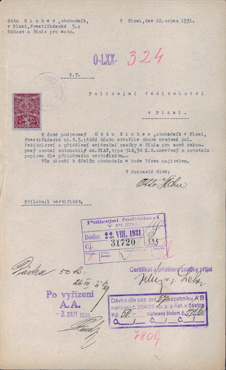 Staatliche Gebietsarchiv in Pilsen > Polizei-Direktion Pilsen > 1918-1951 > S > Sicher Ota