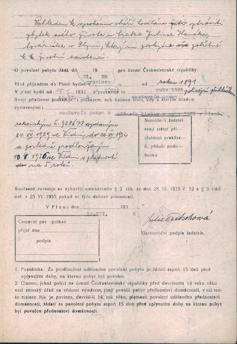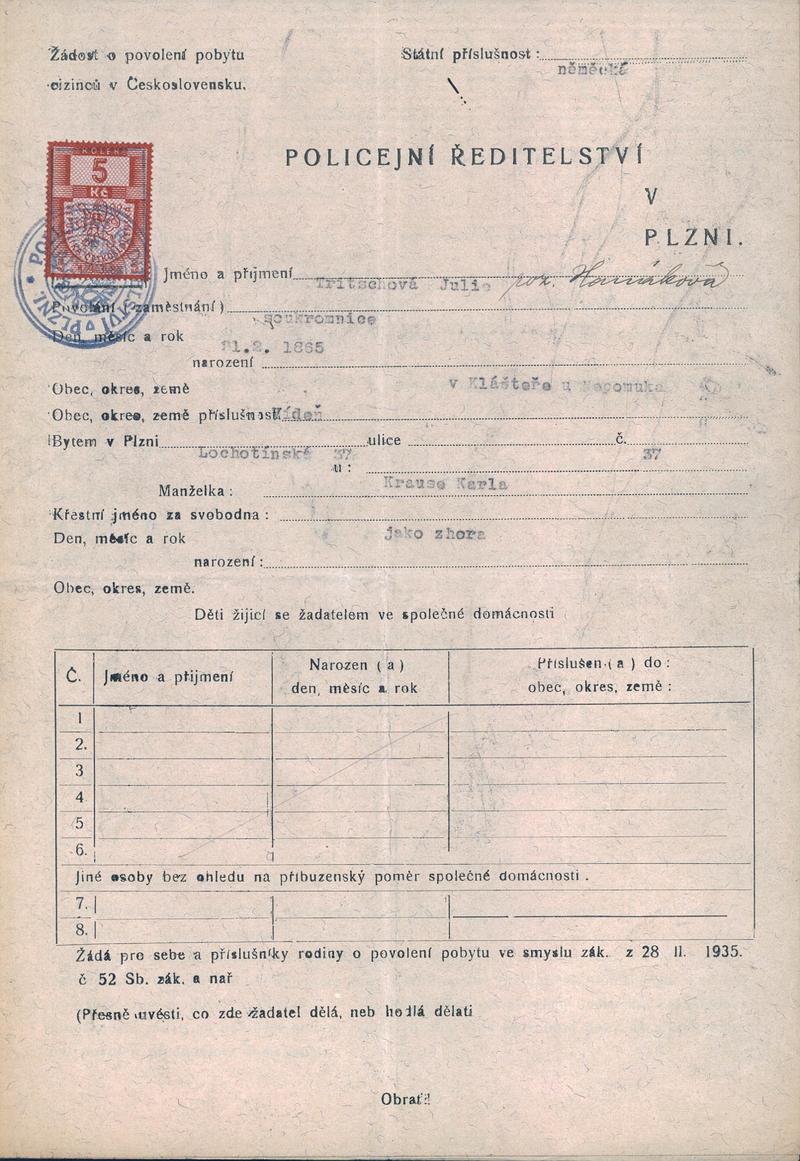 Staatliche Gebietsarchiv in Pilsen > Polizei-Direktion Pilsen > 1918-1951 > T > Tritschová Julie