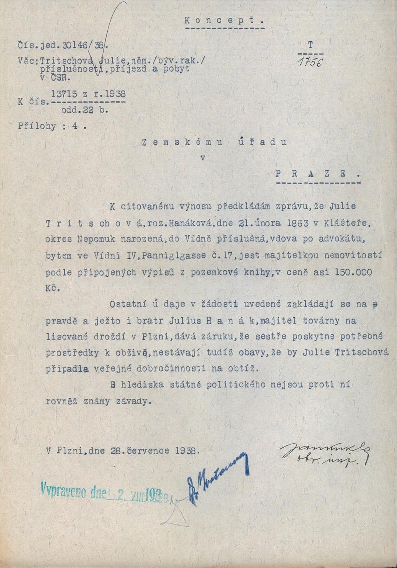 Staatliche Gebietsarchiv in Pilsen > Polizei-Direktion Pilsen > 1918-1951 > T > Tritschová Julie