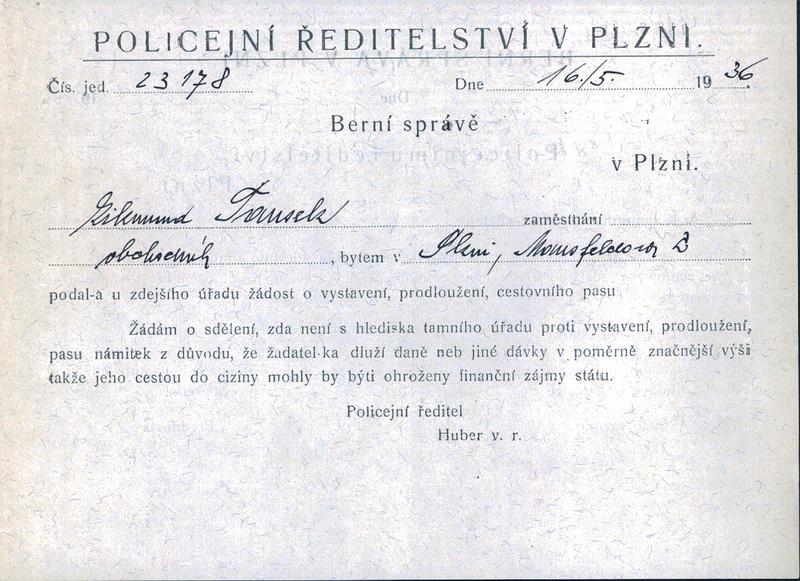 Staatliche Gebietsarchiv in Pilsen > Polizei-Direktion Pilsen > 1918-1951 > T > Tausek Zikmund