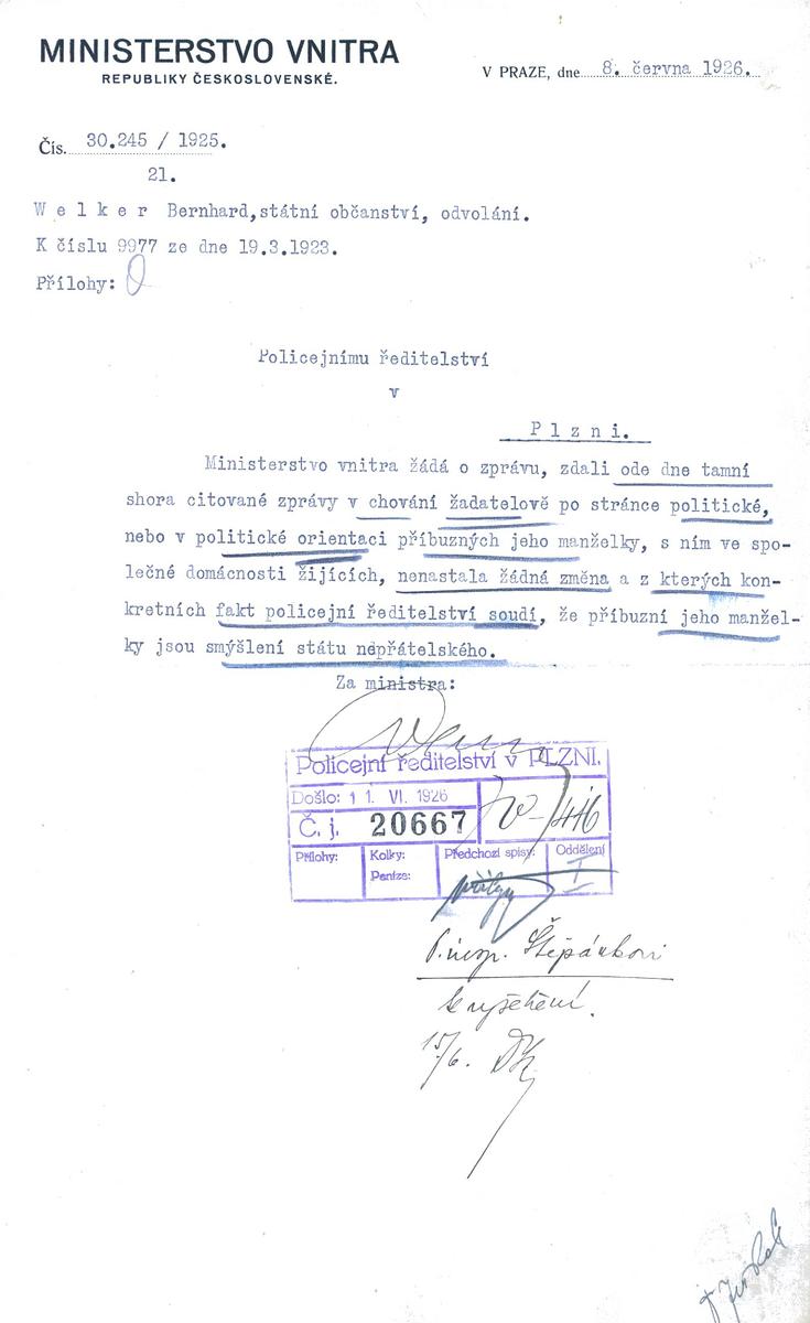Staatliche Gebietsarchiv in Pilsen > Polizei-Direktion Pilsen > 1918-1951 > V > Welker Bernard