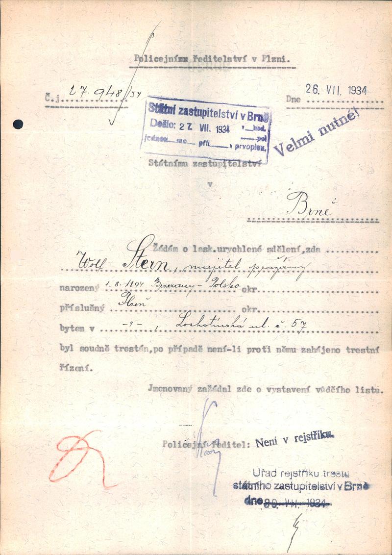 Staatliche Gebietsarchiv in Pilsen > Polizei-Direktion Pilsen > 1918-1951 > Š > Stern Volf