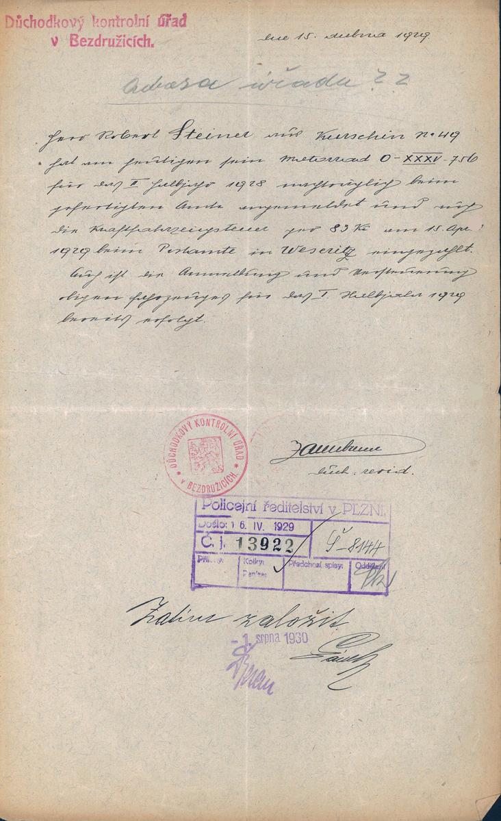 Staatliche Gebietsarchiv in Pilsen > Polizei-Direktion Pilsen > 1918-1951 > Š > Steiner Robert