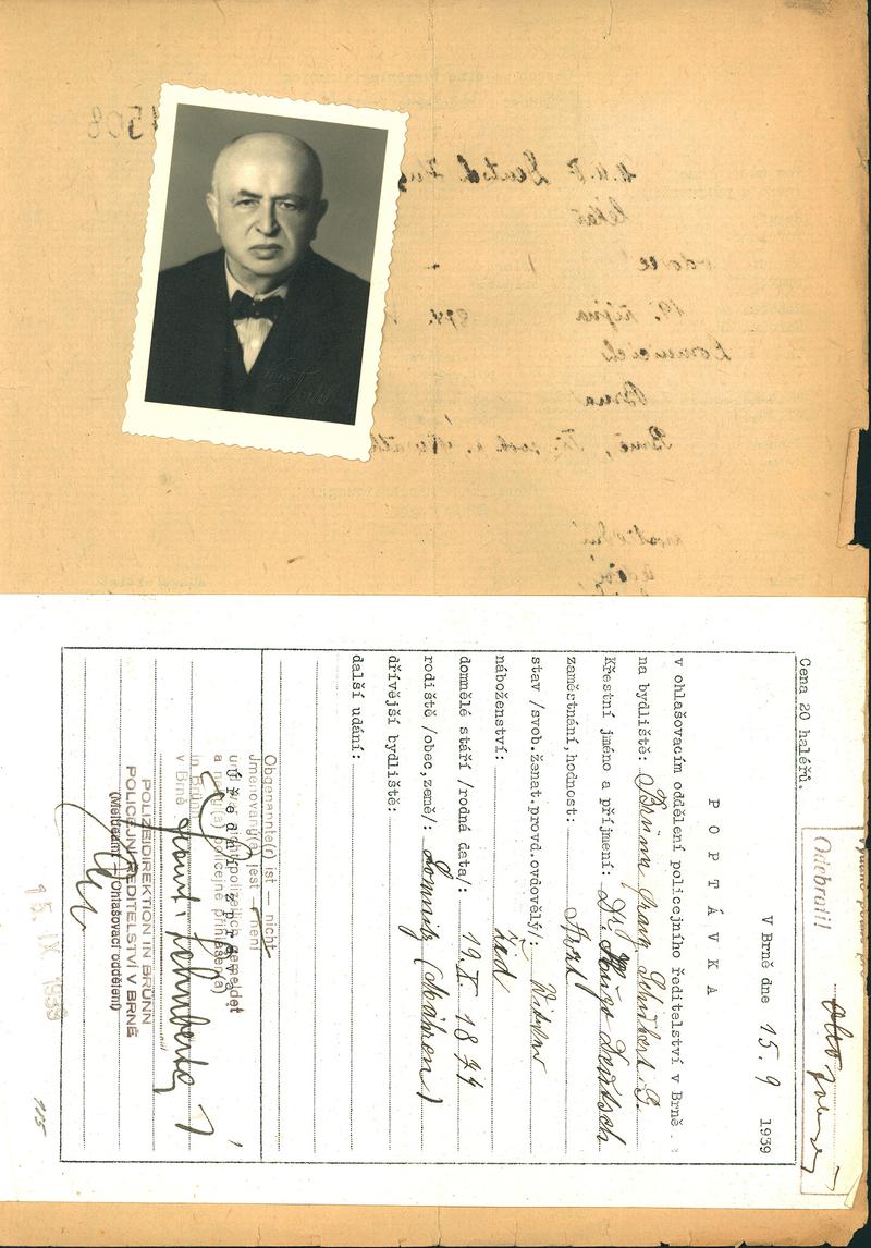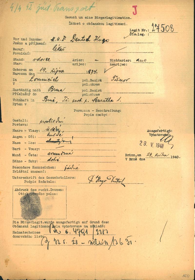 Moravský zemský archiv Brno > Policejní ředitelství Brno > Žádosti židovských občanů určených k transportu o občanské legitimace > Deutsch Hugo