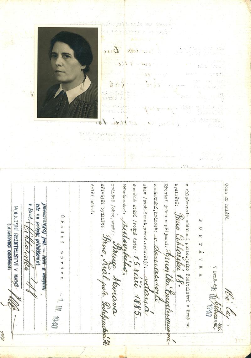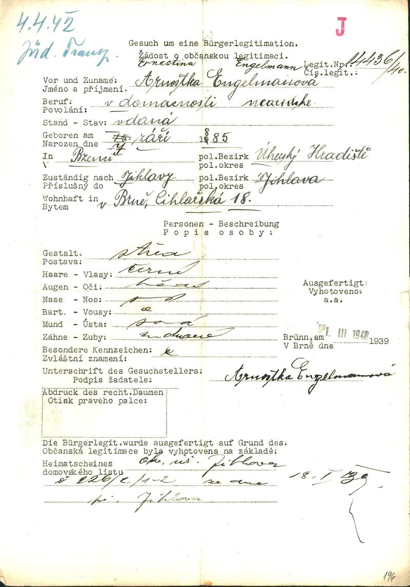 Moravský zemský archiv Brno > Policejní ředitelství Brno > Žádosti židovských občanů určených k transportu o občanské legitimace > Engelmannová Arnoštka
