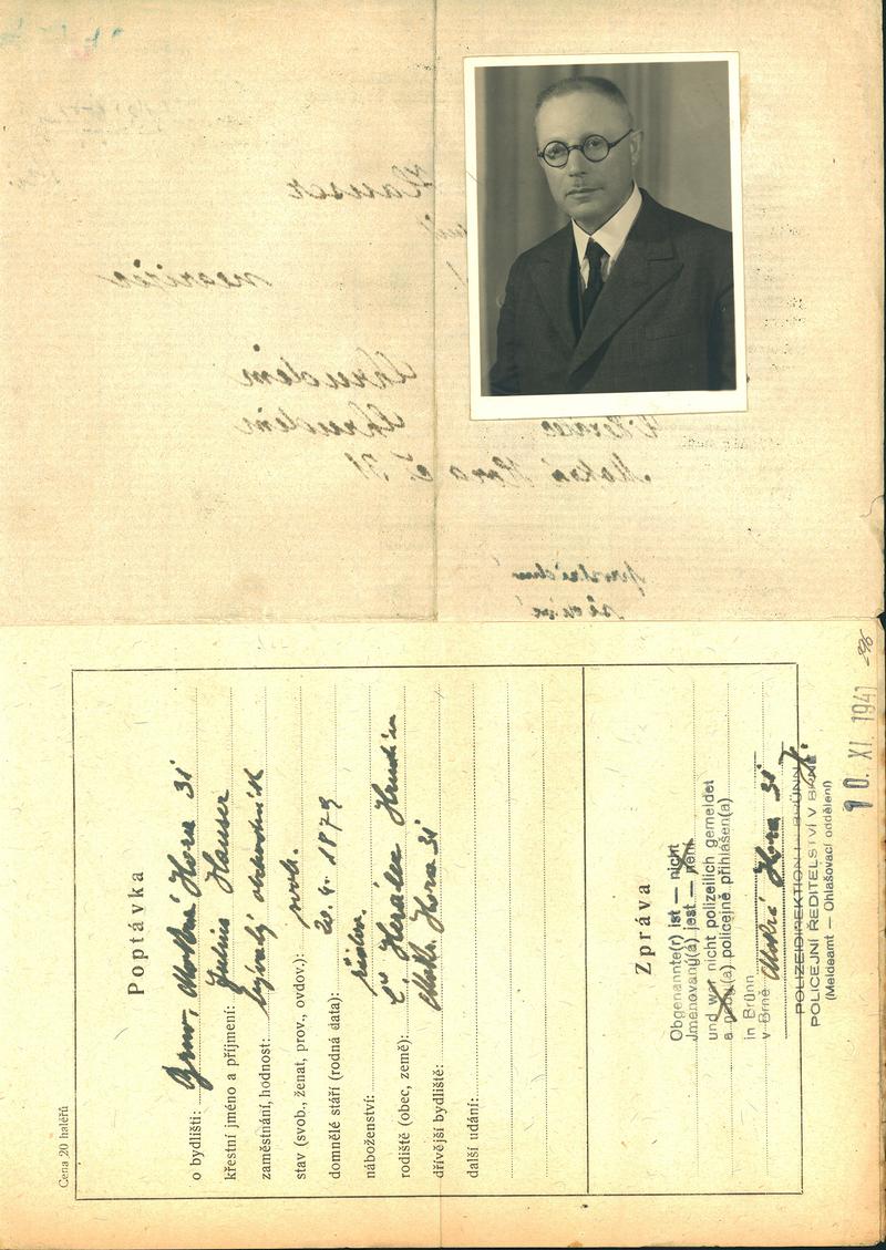Moravský zemský archiv Brno > Policejní ředitelství Brno > Žádosti židovských občanů určených k transportu o občanské legitimace > Hauser Julius