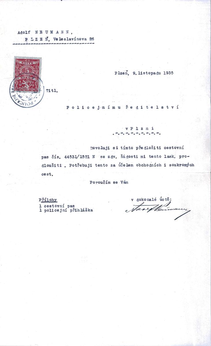 Staatliche Gebietsarchiv in Pilsen > Polizei-Direktion Pilsen > 1918-1951 > N > Neumann Adolf