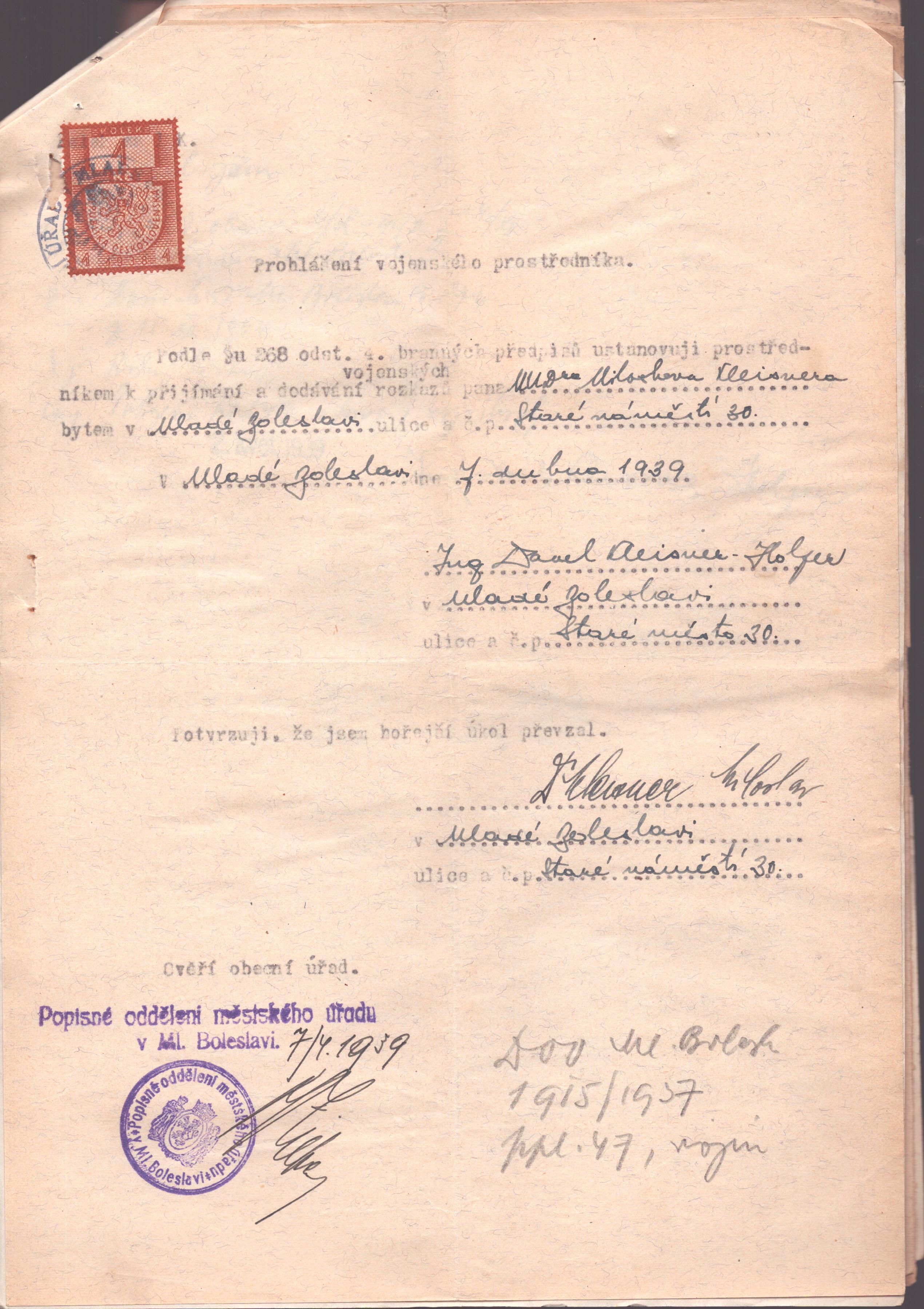 Kleisner-Holzer Pavel: Prohlášení vojenského prostředníka
