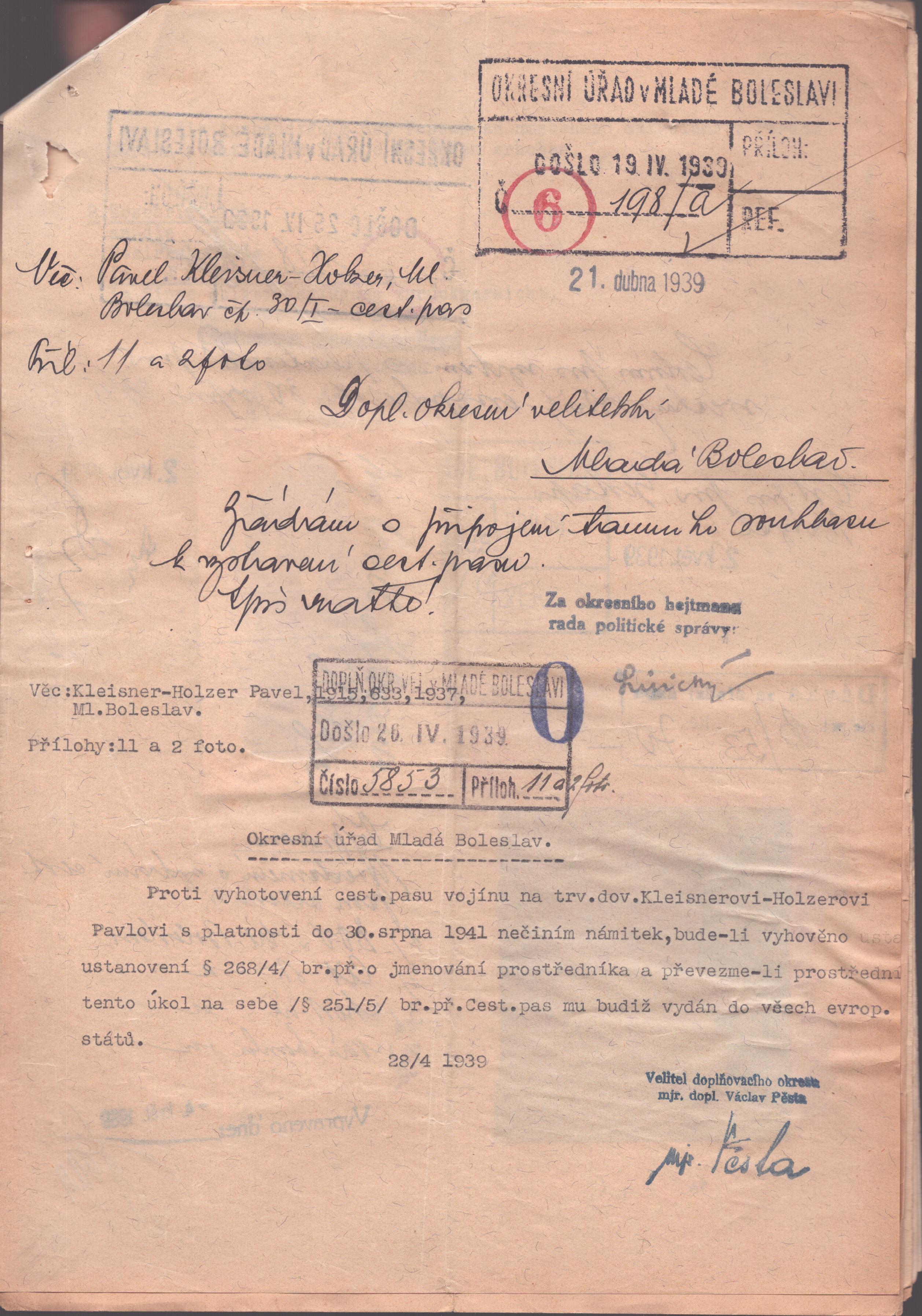 Kleisner-Holzer Pavel: Vyjádření k žádosti o vystavení cestovního pasu