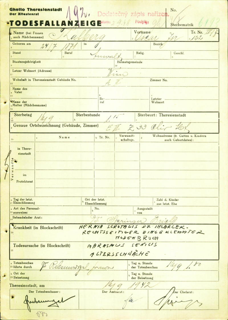 Thalberg Oscar: Todesfallanzeige, Ghetto Theresienstadt