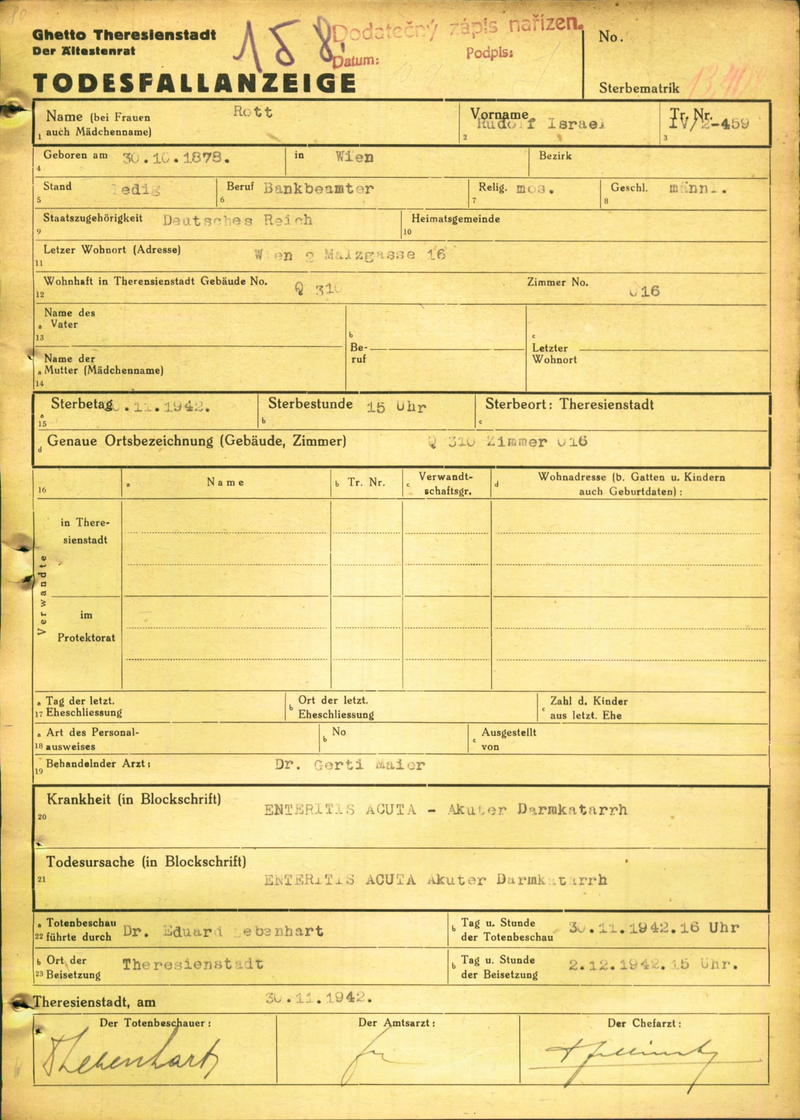 Roth Rudolf: Todesfallanzeige, Ghetto Theresienstadt