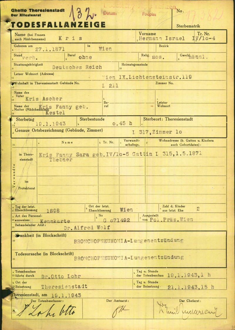 Kris Hermann: Todesfallanzeige, Ghetto Theresienstadt