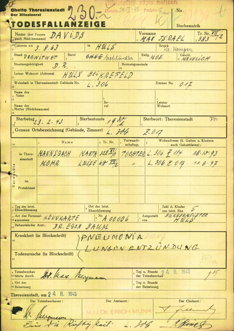 Davids Max: Todesfallanzeige, Ghetto Theresienstadt