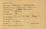 Geboren 02. 07. 1872 Letzte Wohnadresse vor Deportation: Prag XII Adresse/Ort der Registrierung im Protektorat: Prag XII, Na Smetance 14 Transport AAq, nr. 38 (13. 07. 1942, Prag -> Theresienstadt) Transport Bw, nr. 1409 (19. 10. 1942, Theresienstadt -> Treblinka) Ermordet