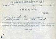 Geboren 18. 06. 1884 Letzte Wohnadresse vor Deportation: Pilsen Adresse/Ort der Registrierung im Protektorat: Pilsen Transport R, nr. 225 (18. 01. 1942, Pilsen -> Theresienstadt) Transport Dm, nr. 4907 (06. 09. 1943, Theresienstadt -> Auschwitz) Ermordet