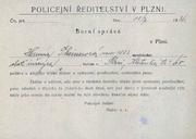 Geboren 23. 12. 1883 Letzte Wohnadresse vor Deportation: Pilsen Adresse/Ort der Registrierung im Protektorat: Pilsen Transport R, nr. 494 (18. 01. 1942, Pilsen -> Theresienstadt) Transport An, nr. 185 (25. 04. 1942, Theresienstadt -> Warschau) Ermordet