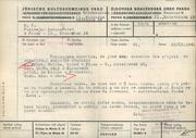 Geboren 18. 08. 1913 Letzte Wohnadresse vor Deportation: Prag V Adresse/Ort der Registrierung im Protektorat: Prag V, Josefovská 10 Transport D, nr. 899 (31. 10. 1941, Prag -> Łódź) Ermordet