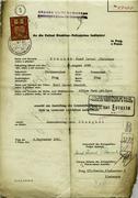 Geboren 20. 08. 1895 Letzte Wohnadresse vor Deportation: Prag XIX Adresse/Ort der Registrierung im Protektorat: Prag XIX, Kladenská 3 Transport E, nr. 172 (03. 11. 1941, Prag -> Łódź) Ermordet