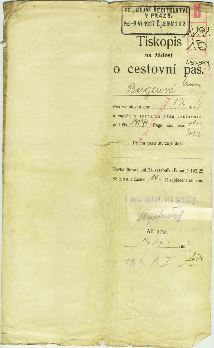 National archives Prague > Police Directorate Prague > 1931-1940 > B > Bergerová Anna