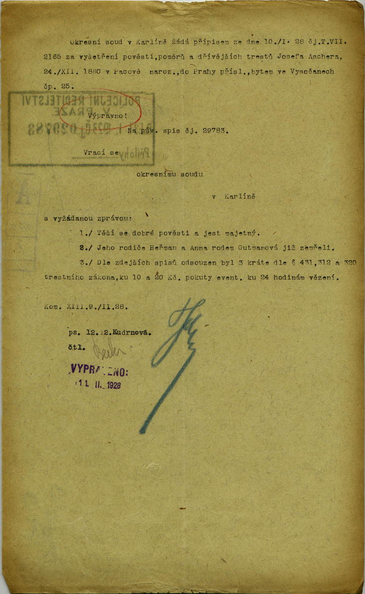 Ascher Josef: Probity investigation