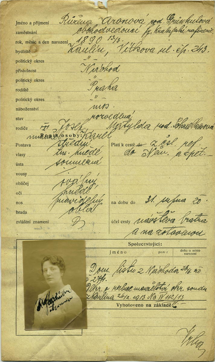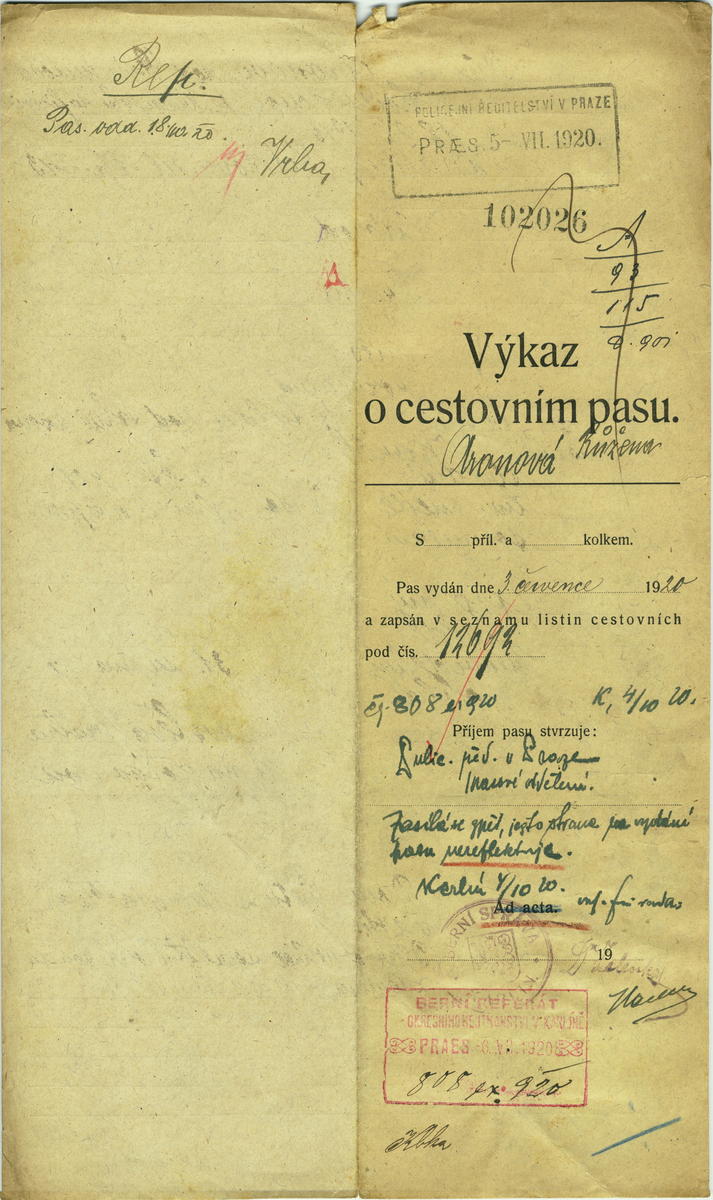 National archives Prague > Police Directorate Prague > 1931-1940 > A > Aronová Růžena
