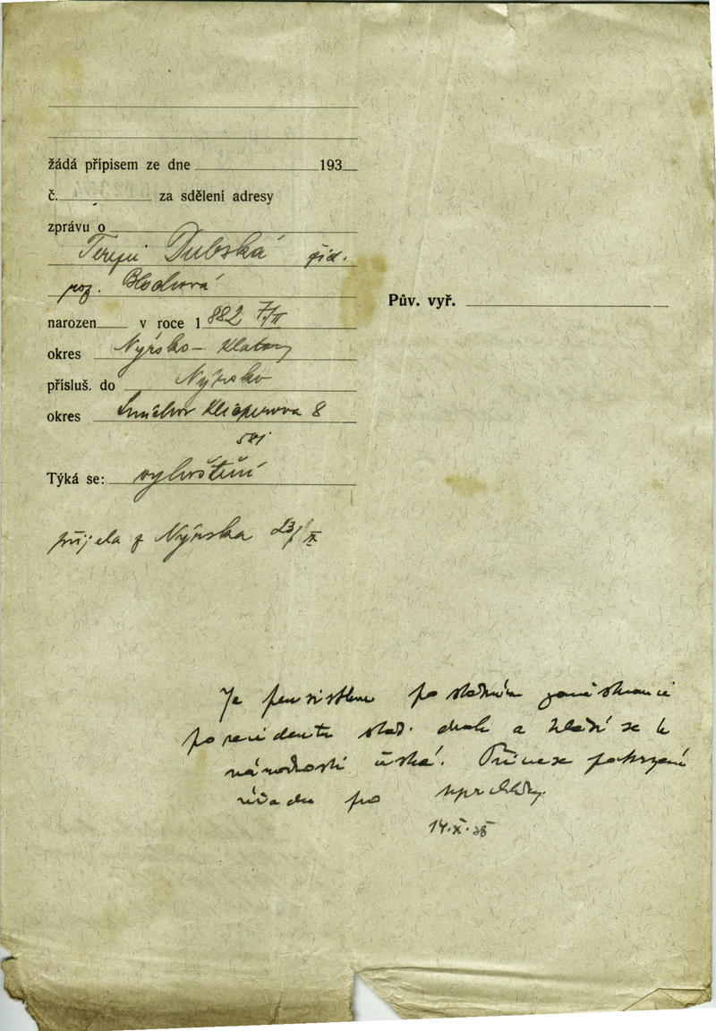 National archives Prague > Police Directorate Prague > 1931-1940 > D > Dubská Terezie