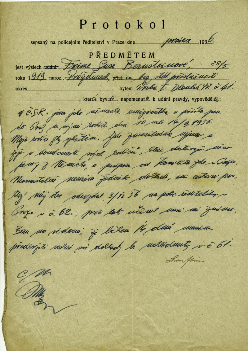 Bernsteinová Frieda: Výslech v rámci šetření o pobytu