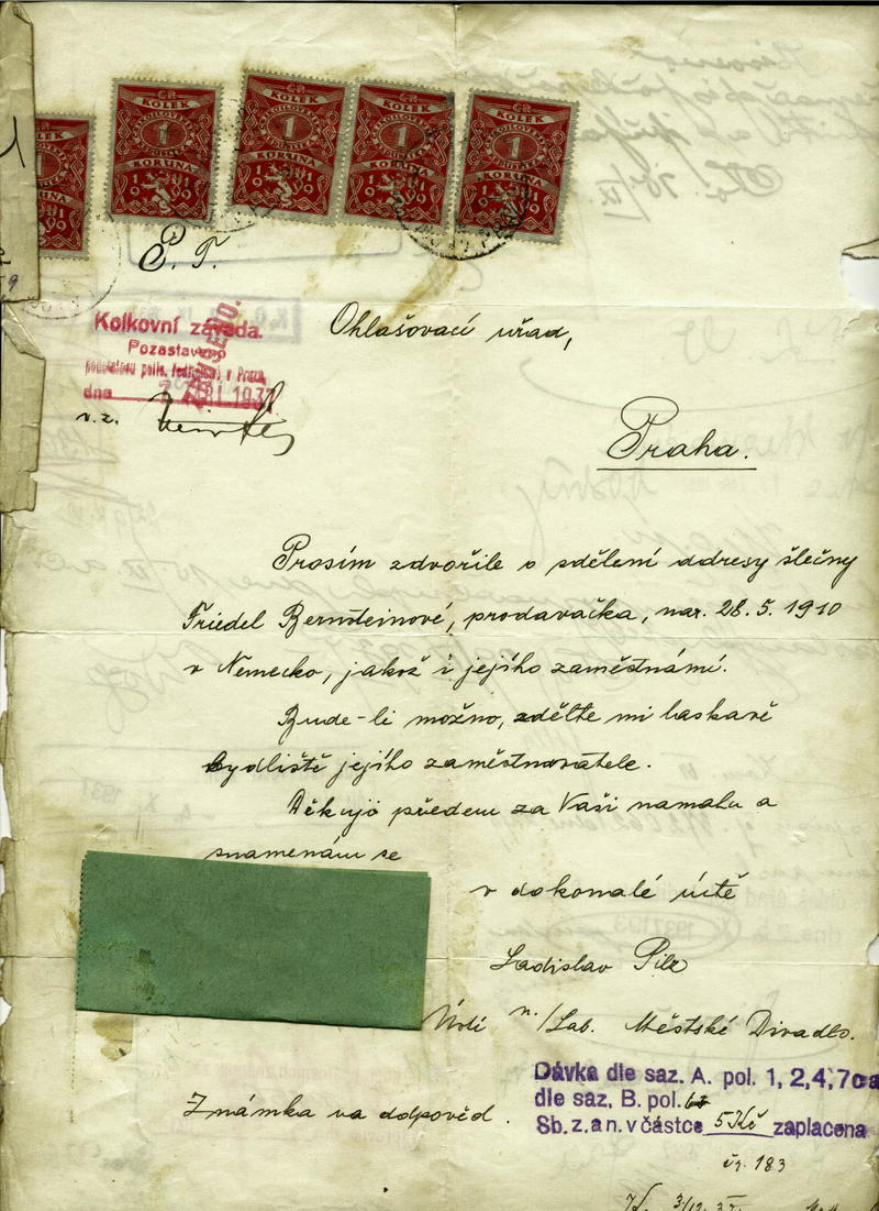 National archives Prague > Police Directorate Prague > 1931-1940 > B > Bernsteinová Frieda