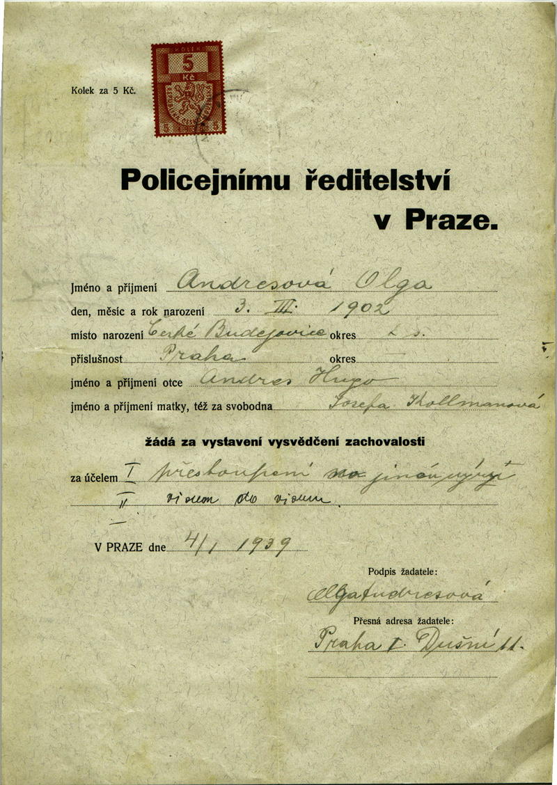 National archives Prague > Police Directorate Prague > 1931-1940 > A > Andresová Olga