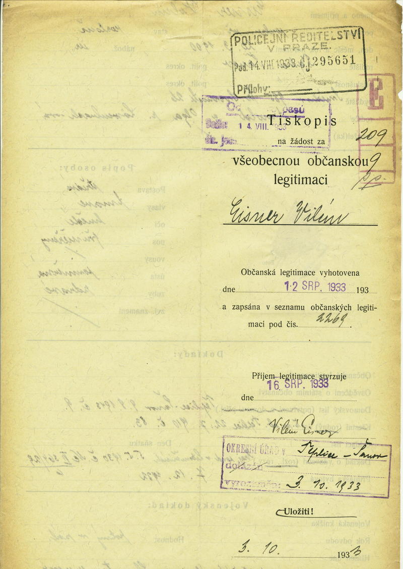 National archives Prague > Police Directorate Prague > 1941-1950 > E > Eisner Vilém