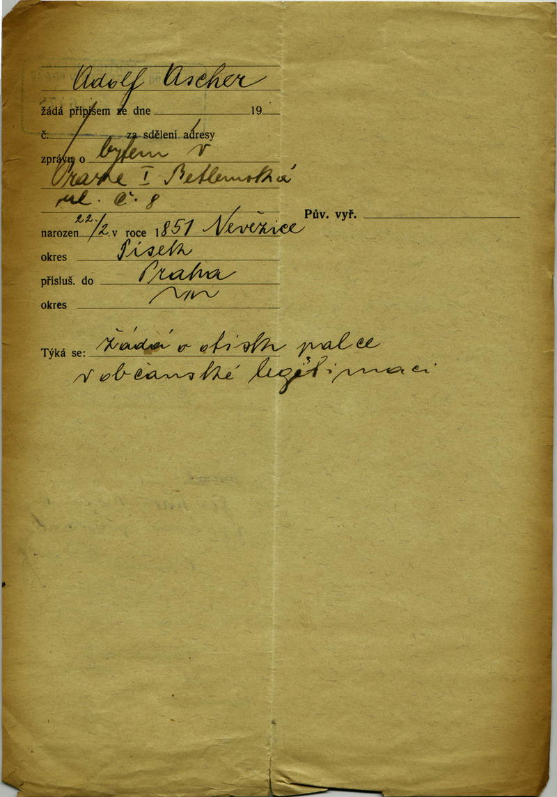 Ascher Adolf: Provedení otisku palce v občanské legitimaci