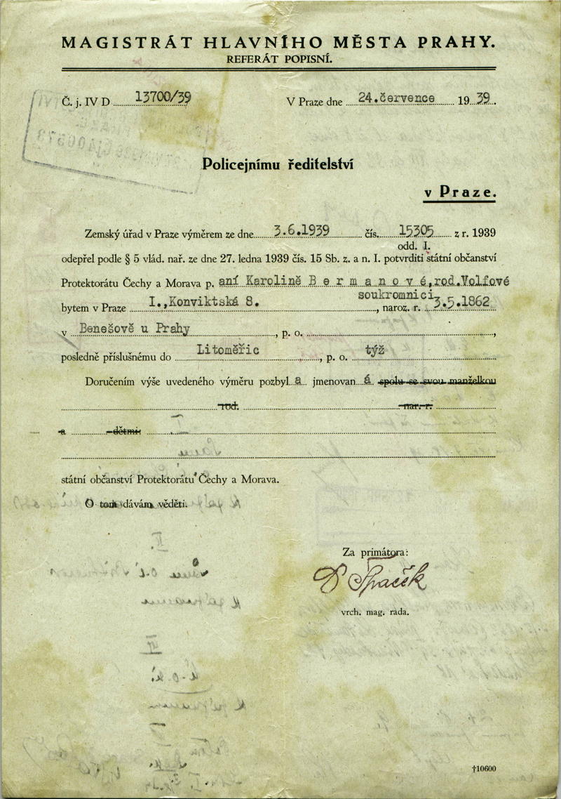 National archives Prague > Police Directorate Prague > 1931-1940 > B > Bermannová Karolina