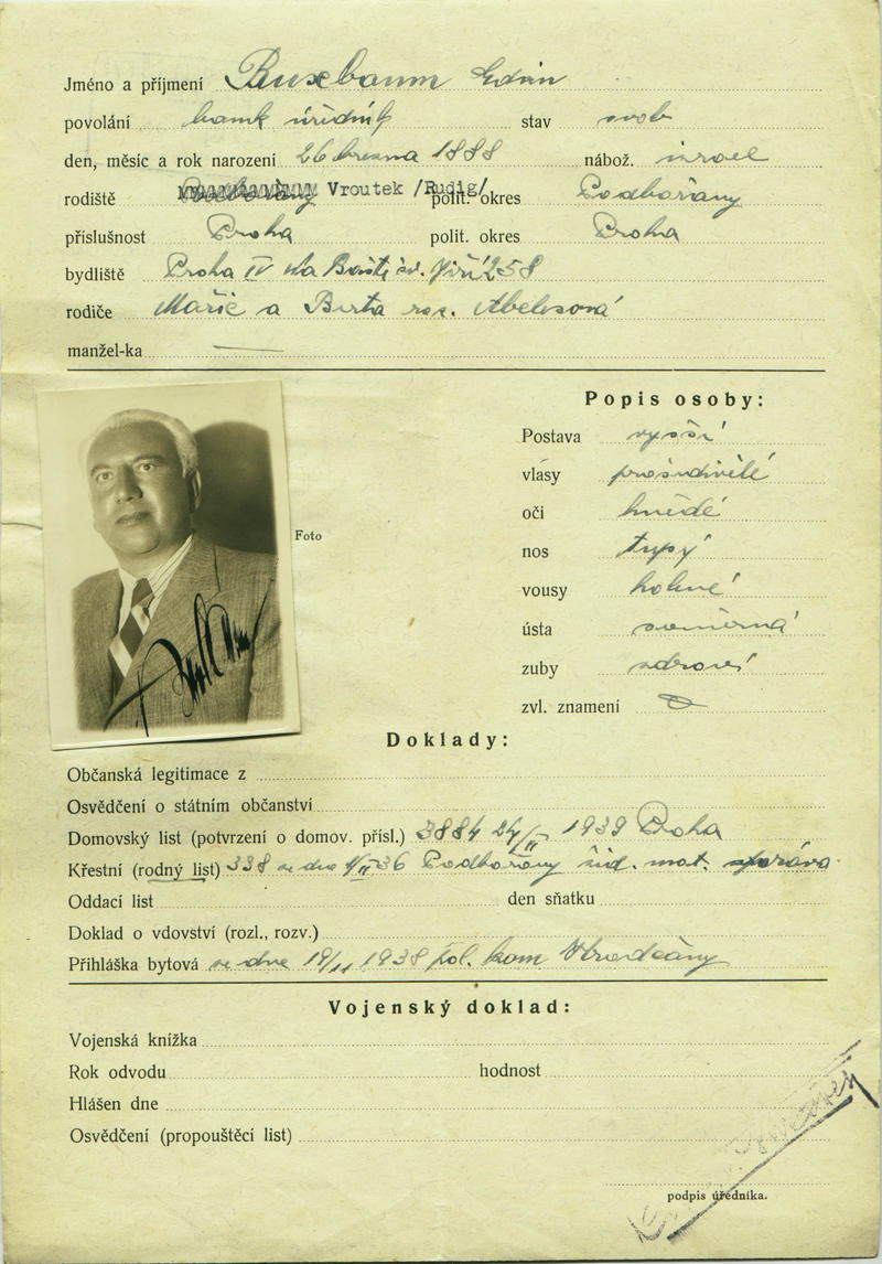 National archives Prague > Police Directorate Prague > 1931-1940 > B > Buxbaum Edvín