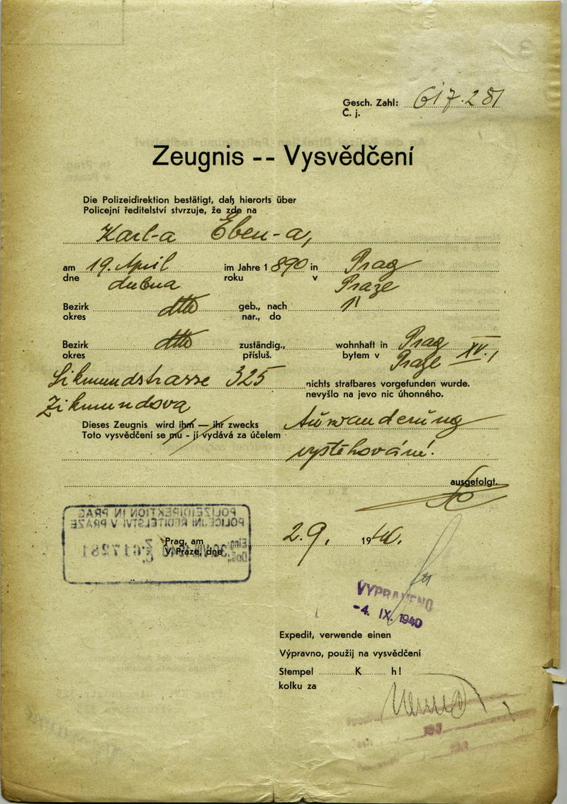National archives Prague > Police Directorate Prague > 1941-1950 > E > Eben Karel